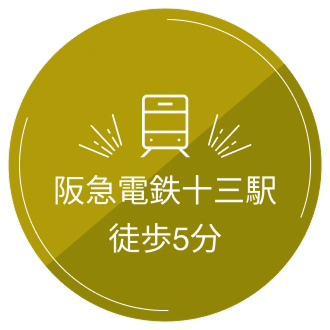 ターミナル駅として多くの人が行き交う阪急電鉄「十三」駅から徒歩5分で、電車でも通いやすい便利な立地です。2031年に予定されている阪急新大阪連絡線・なにわ筋連絡線の開通後は、「新大阪」駅や「大阪」駅からもさらにアクセスがよくなる見込みとなっています。