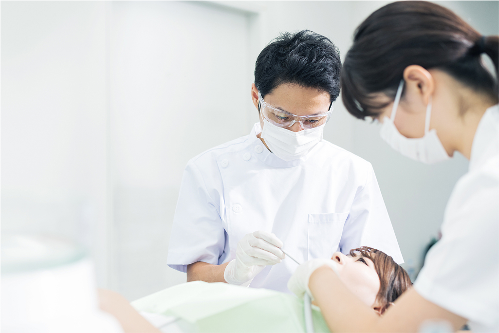 むし歯や歯周病などのお口の状態を確認します。むし歯・歯周病・知覚過敏などがある場合は、優先的に治療を行います。